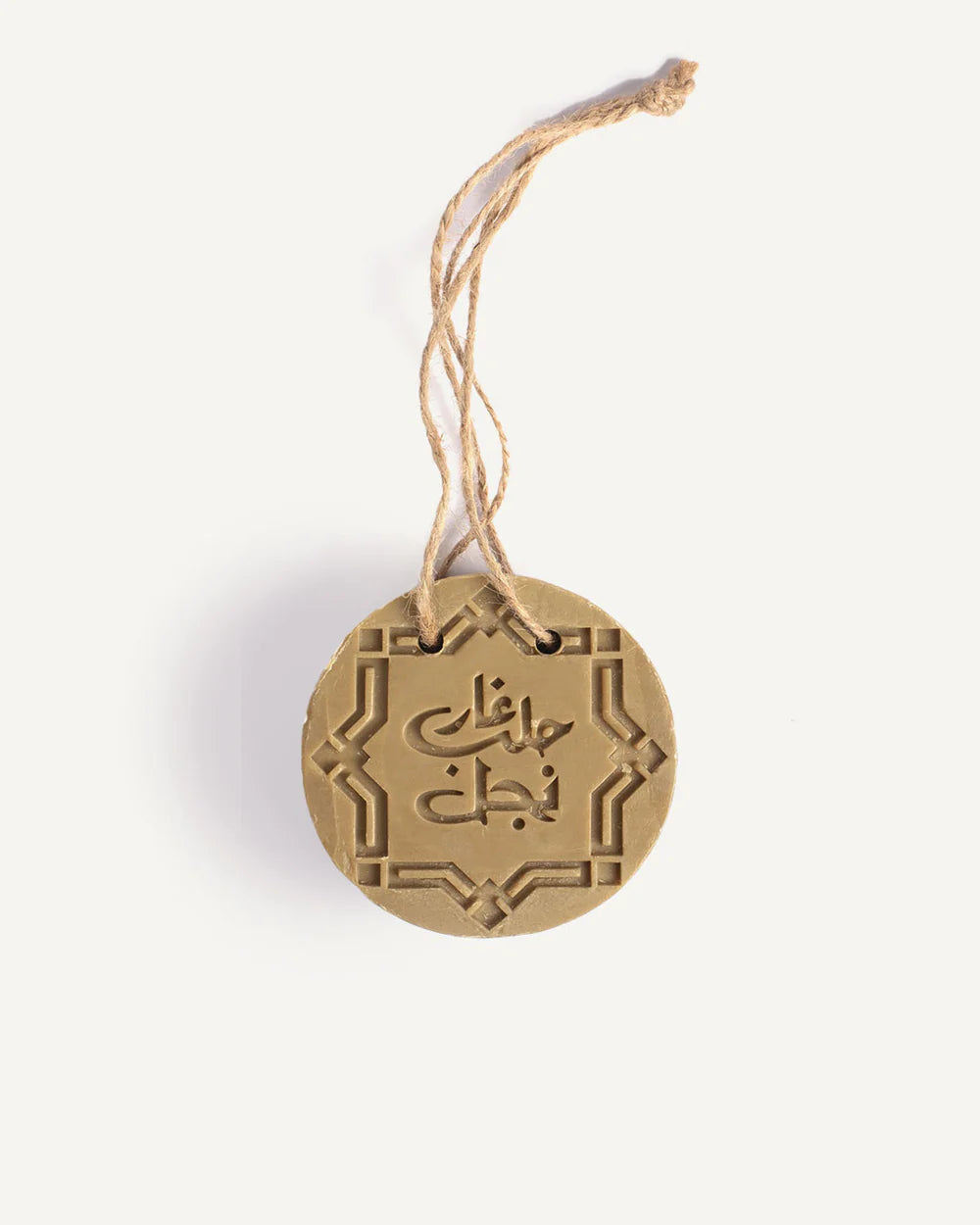 Denna unika tvål kombinerar olivoljans närande egenskaper med lagerbärsoljans renande och lugnande verkan. Hantverksmässigt tillverkad i vår familjeägda tvålfabrik i Syrien, bevarar den ett urgammalt kunnande som gått i arv i generationer. Den eleganta designen, prydd med dekorativa ornament och ett praktiskt snöre, gör den till ett både stilfullt och funktionellt val i din hudvårdsrutin.