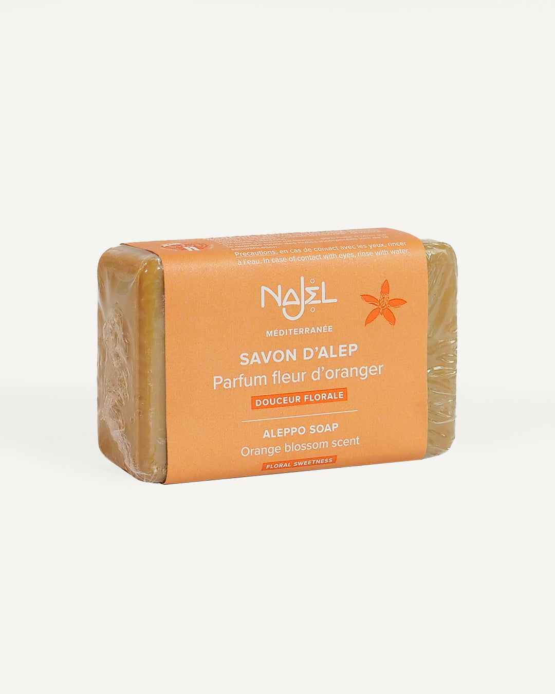 Upptäck Aleppotvålen med apelsinblom, tillverkad av närande olivolja och renande lagerbärsolja. Den är berikad med den värdefulla essensen av apelsinblomma. Tvålen tillverkas i vår tvålfabrik i Syrien enligt ett uråldrigt hantverk som har gått i arv i generationer, vilket garanterar en oöverträffad kvalitet och äkthet.