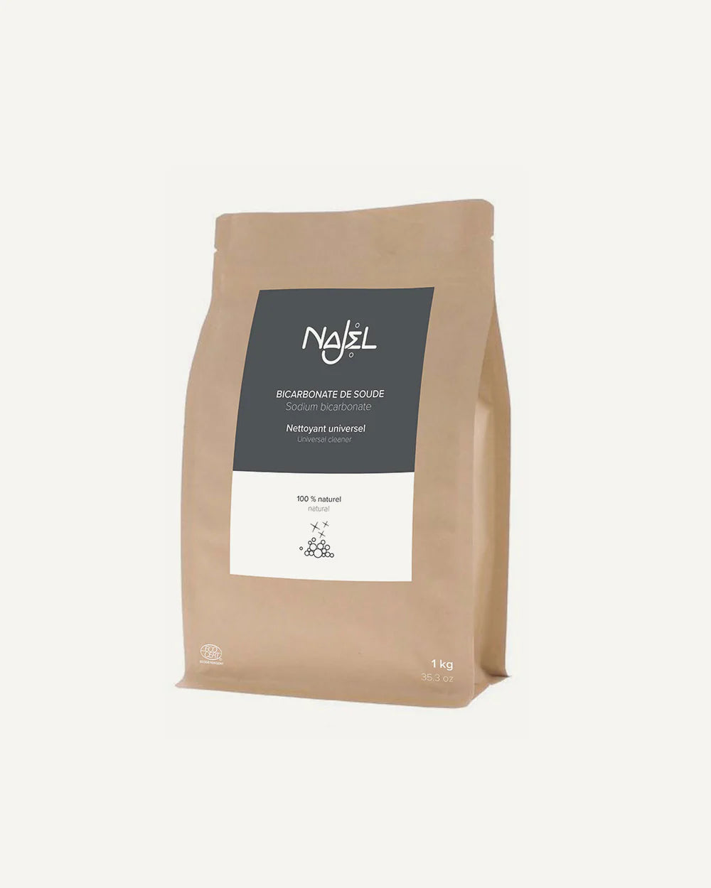 Bikarbonat, ett måste för naturliga och giftfria rengöringsprodukter, är en mångsidig hjälpreda för ditt hem. Ekonomisk, denna enda produkt är lika effektiv som en mängd olika rengöringsmedel tillsammans. Certifierad av Ecocert, naturlig och parfymfri, är den idealisk för dagligt bruk. Den eliminerar lukt, tar bort envisa fläckar och desinficerar ytor. För ett hälsosamt hem, kombinera den med vårt svarta tvål eller våra Aleppo-såpor, uppskattade för sina renande och rengörande egenskaper. Använd den tillsammans med våra Aleppo-tvålflingor, som är gjorda på olivolja, för att skapa ett milt hemmagjort tvättmedel. Dess format på ett kilo ger många användningsområden.