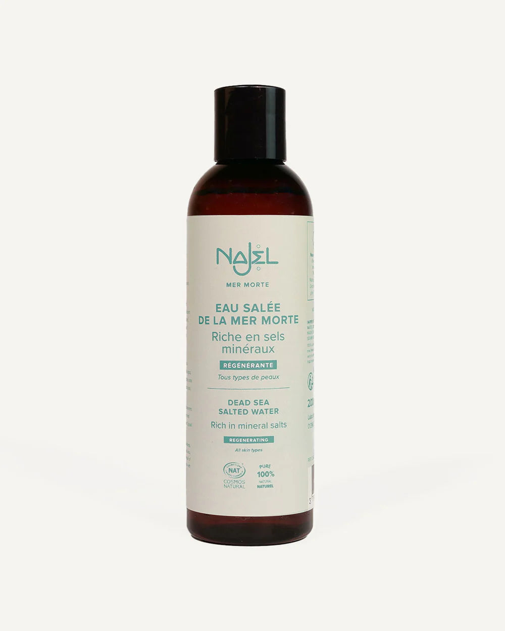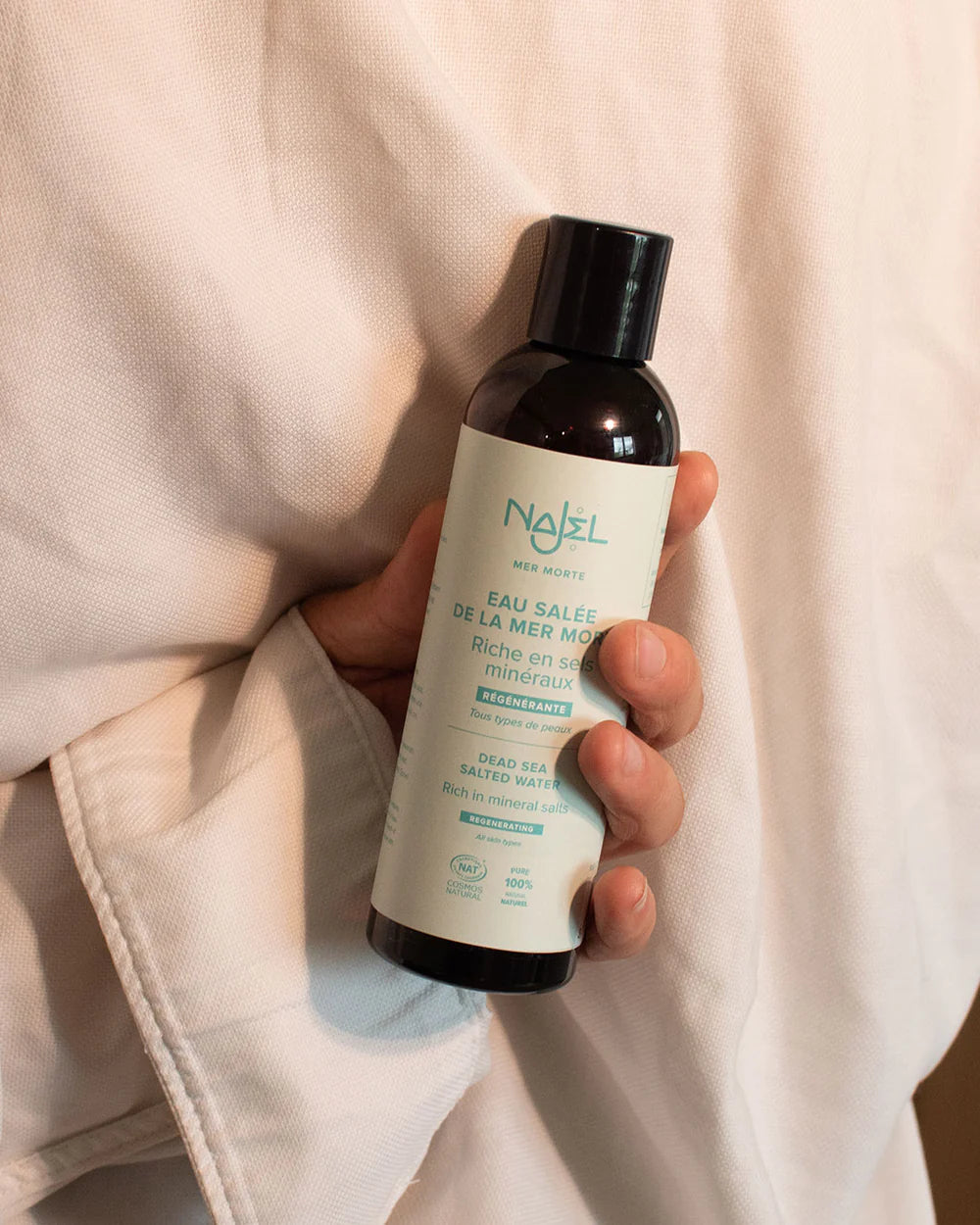 Dyk in i de urgamla fördelarna med Döda havets saltvatten. Det består av 21 mineraler, där magnesium, kalium och kalcium finns i större mängder. Detta mirakulösa vatten samlar alla egenskaper för att revitalisera kroppen. Tack vare sin rena, certifierade naturliga och parfymfria formula, renar det effektivt din hud och ger nytt liv till ditt hår. Låt dig omslutas av denna unika sensoriska upplevelse och njut av ett ögonblick av välbefinnande.
