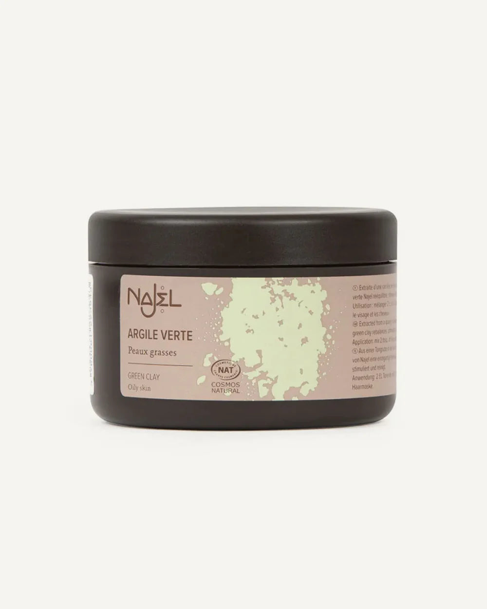 Grön lera, utvunnen från ett stenbrott i Auvergne nära Puy-en-Velay, är perfekt för en detoxkur hemma. Ren och naturlig verkar den effektivt för att rena både hud och hårbotten. Tack vare sina absorberande egenskaper reglerar den överskott av sebum och minimerar porer för en synbart klarare hudton. Den är också känd för att lindra irritationer vid eksem och psoriasis. Genom att eliminera orenheter och föroreningar lämnar den en uppfriskande känsla på både hud och hår.