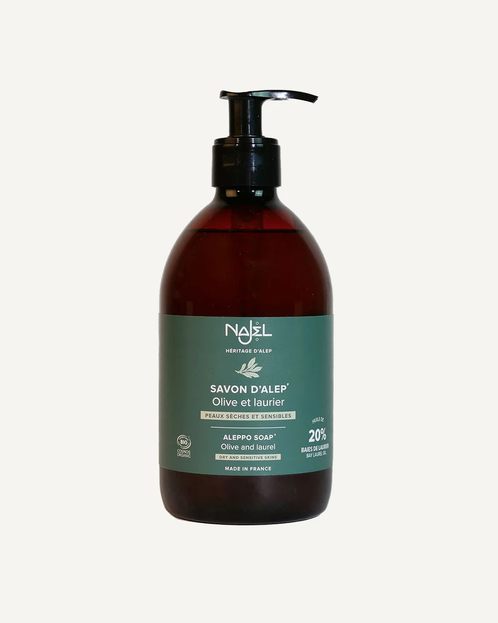 Flytande Aleppotvål med 20 % lagerbärsolja är en hyllning till traditionen. Denna naturliga rengöringsprodukt kombinerar de lugnande egenskaperna hos lagerbärsolja och de rengörande fördelarna med olivolja för att ge en unik hudvårdsupplevelse. Tillverkad enligt den ursprungliga receptet för Aleppotvål, är denna produkt certifierad ekologisk och doftfri. Den rengör skonsamt samtidigt som den bevarar hudens naturliga fukt, vilket gör den idealisk för torr och mogen hud samt normal hud.