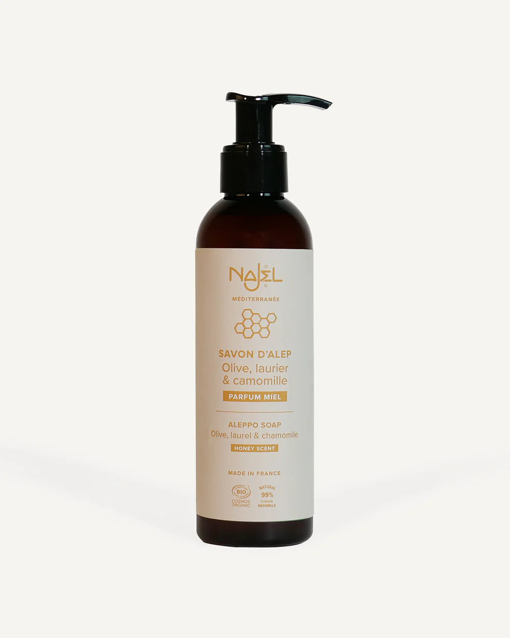 Upptäck vår flytande Aleppotvål med honung, en äkta naturens skatt. Tillverkad enligt ett uråldrigt recept, kombinerar den närande olivolja med rengörande lagerbärsolja. Tvålen rengör skonsamt och lämnar huden mjuk med en lätt, behaglig doft. En naturlig hudvårdsprodukt som respekterar både din hud och din hälsa.