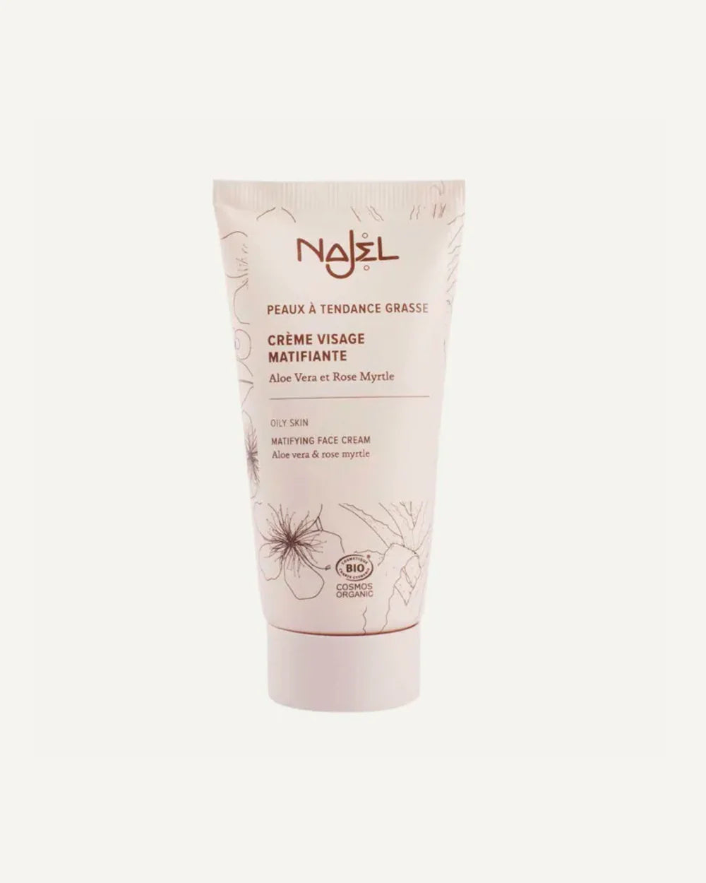 Upptäck vår mattifierande ansiktskräm, ett koncentrat av naturen för perfekt hud. Genom att reglera överflödigt talg minskar denna kräm orenheter och förfinar porerna tack vare Aloe Vera. Berikad med olivolja och lagerbärsolja, återfuktar den på djupet och ger omedelbar mjukhet. Citron, med sina renande egenskaper, ger en oöverträffad fräschör. Certifierad ekologisk och doftfri, är den även lämplig för den mest reaktiva huden.