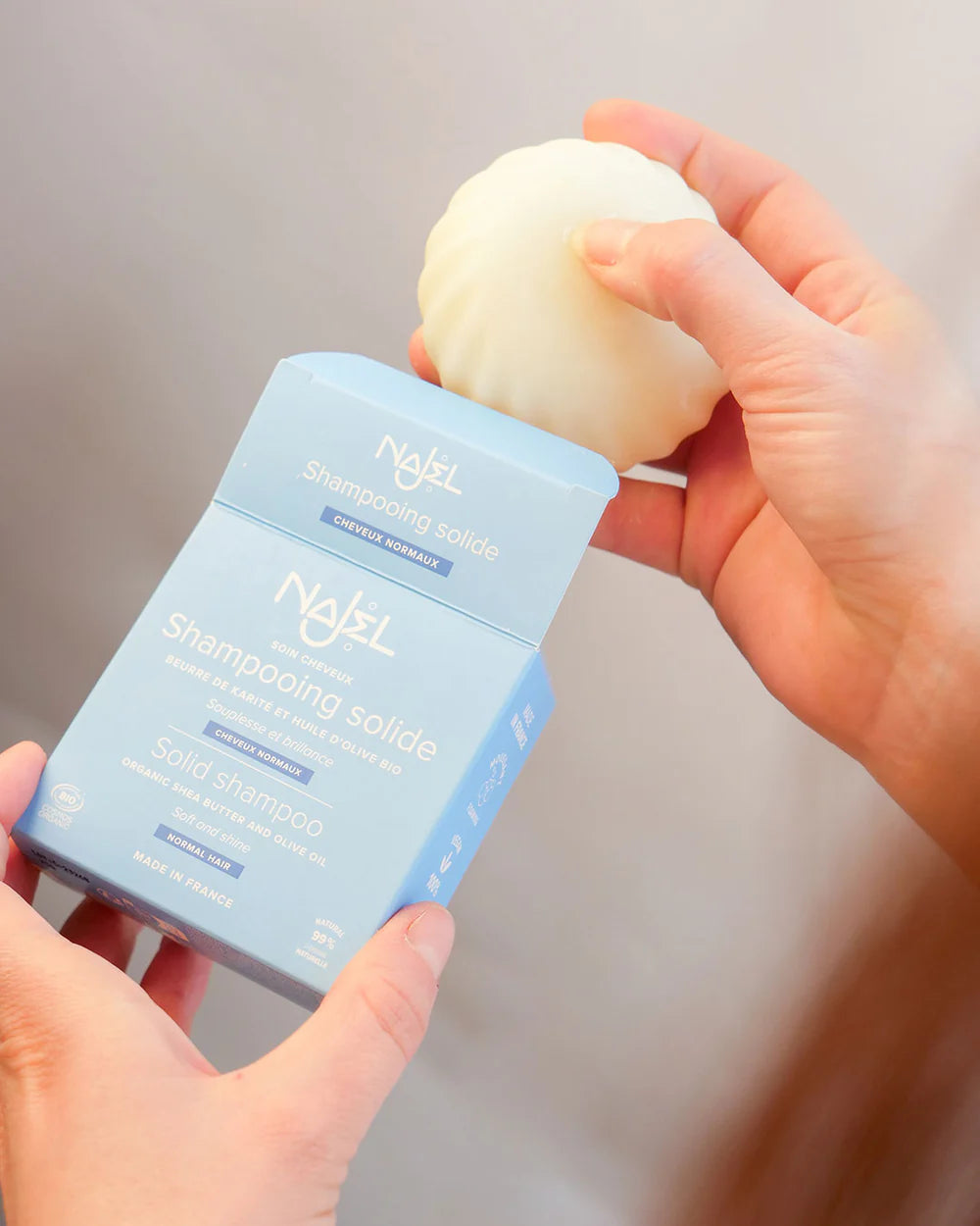 Välj Najel's fasta schampo och upplev ett hår som är både friskt och glänsande. Berikat med sheasmör ger vårt schampo djup näring och skyddar håret mot yttre påverkan. Lagerbärsolja och olivolja renar hårbotten och reglerar överskott av talg, vilket ger mjukt och lätt hår varje gång.