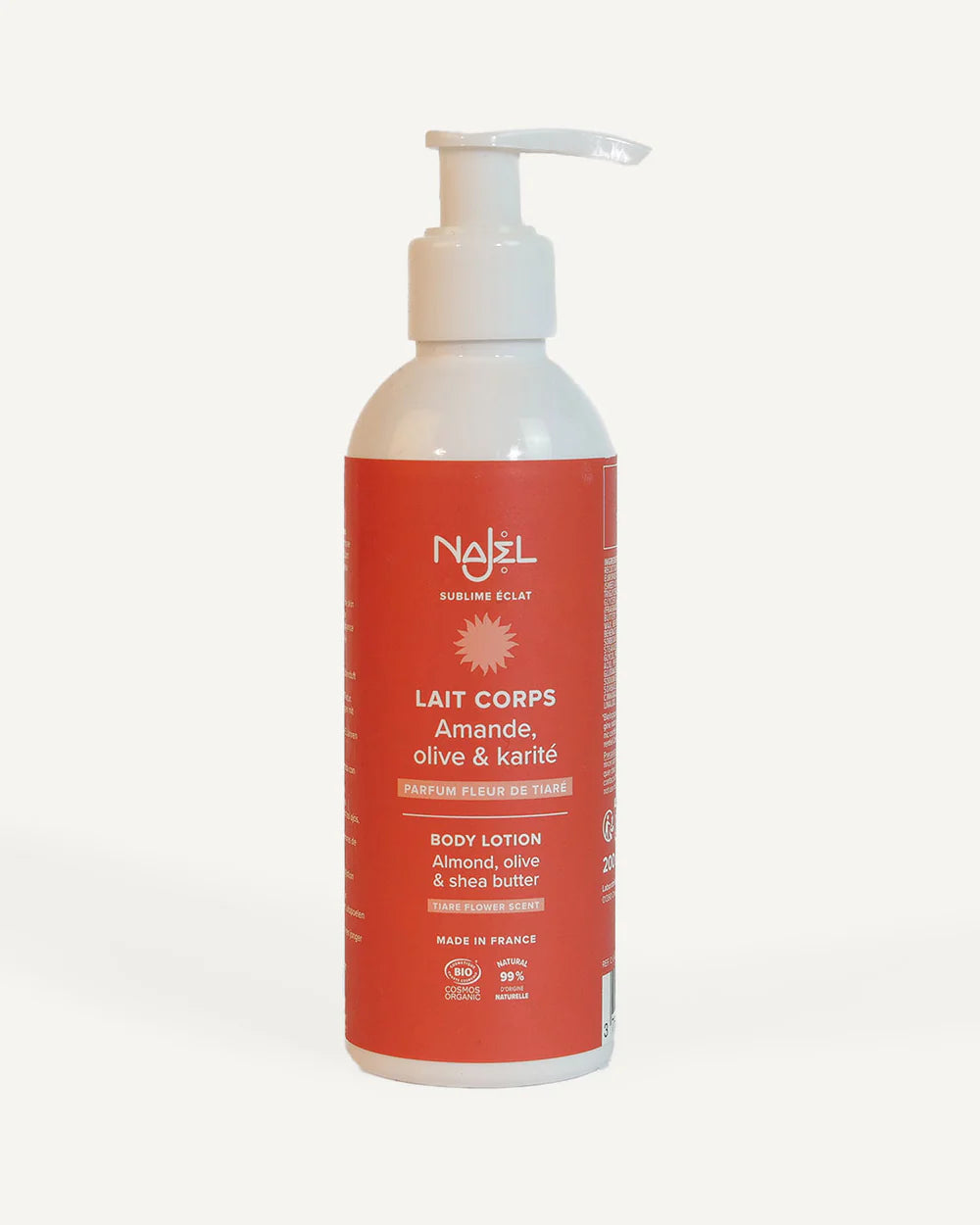 Ge din hud den näring den förtjänar med vår Tiare-kroppsmjölk, berikad med naturliga ingredienser för intensiv återfuktning och mjukhet. Kamomillvatten lugnar, medan lagerbärsolja och olivolja verkar återfuktande på djupet. Sheasmör, rikt på vitaminer, främjar hudens förnyelse, och sötmandelolja skapar en skyddande och mjukgörande barriär för långvarig komfort.