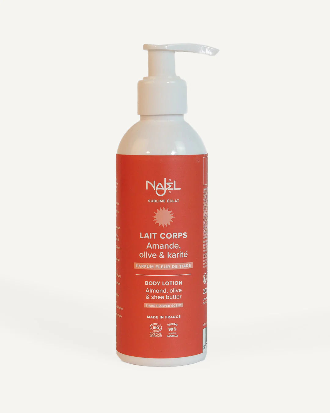 Vår Tiaré bodylotion är berikad med lugnande kamomillvatten, lagerbärsolja och olivolja för djup återfuktning – och lämnar huden mjuk, smidig och näringsrik. Dessutom bidrar sheasmör, rikt på vitaminer, till hudens förnyelse, medan sötmandelolja lägger sig som ett skyddande och mjukgörande hölje för långvarig komfort och välbefinnande.