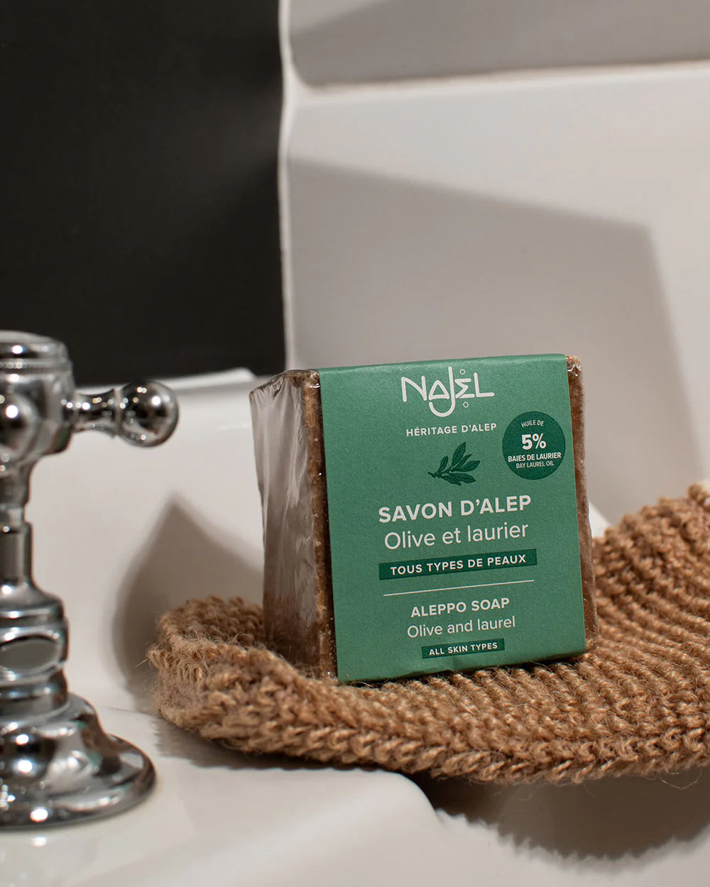 Upptäck äktheten i traditionell Aleppotvål med 5% lagerbärsolja, ett riktigt under för din hud. Denna unika tvål kombinerar olivoljans närande egenskaper med lagerbärsoljans rengörande verkan. Hantverksmässigt tillverkad i vår tvålfabrik i Syrien, respekterar denna produkt det uråldriga hantverkskunnande som har förts vidare från generation till generation.