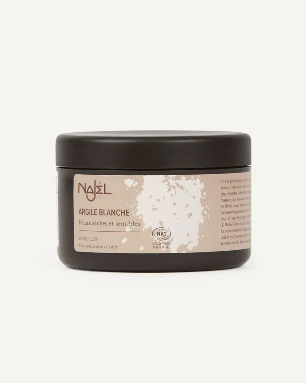 Upptäck vit lera – en naturlig skatt med många fördelar. Utvunnen från en stenbrott i Bretagne är den känd för sina renande och lugnande egenskaper. Ren, doftfri och certifierat naturlig, är vit lera särskilt lämpad för torr, mogen och känslig hud. Den hjälper till att avlägsna toxiner samtidigt som den lindrar hudirritationer. Dessutom renar den hårbotten och återställer glans och lyster till håret.